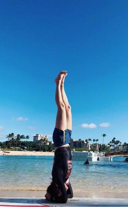 陳意涵海邊度假輕松倒立 笑容陽光少女十足